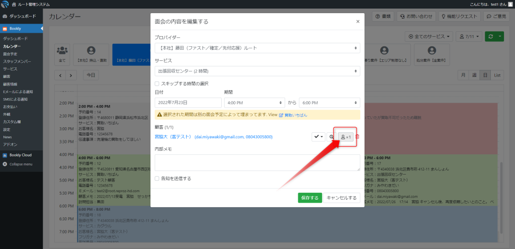 顧客情報追記、編集 顧客情報の追加、編集は顧客名の右にある、人形のアイコンから入ります。 顧客情報メモ 顧客情報に対応履歴の入力をお願いします。※最新を上にお願いします。日付、時間、受電担当を入力し、内容を入れます。次回以降の受電の際に電話番号検索から対応履歴がすぐに見れるので対応品質の向上に!予約保留案件なども顧客情報だけみれば振り替えられるように。